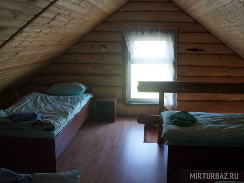 На втором этаже четыре односпальных кровати. Они стоят раздельно, но можно соединить две кровати в одну.