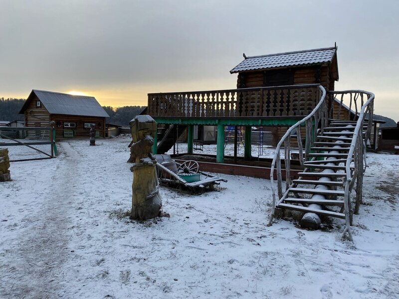 На территории агродеревни пять домиков для отдыхающих. В каждом домике два этажа.