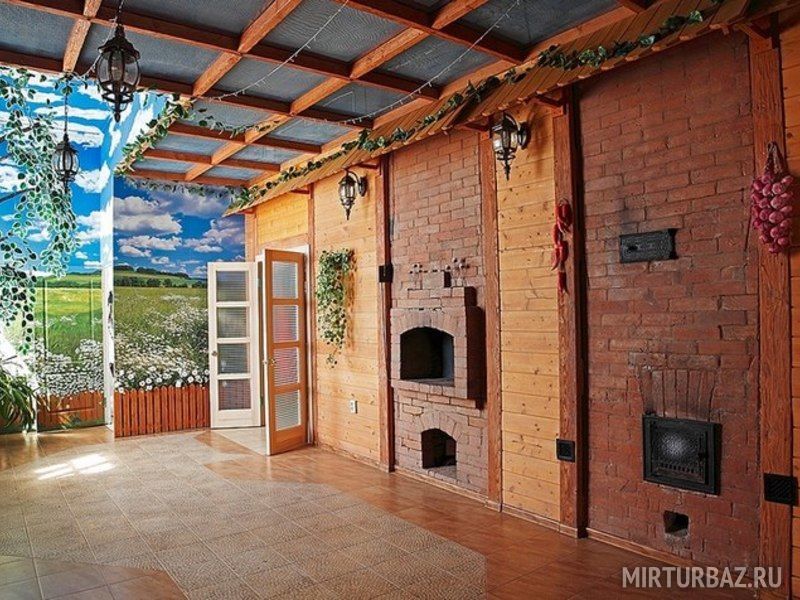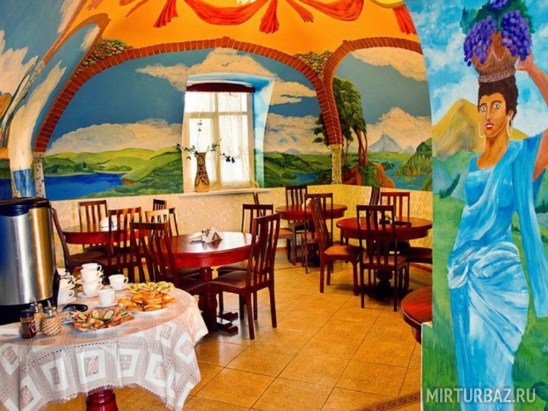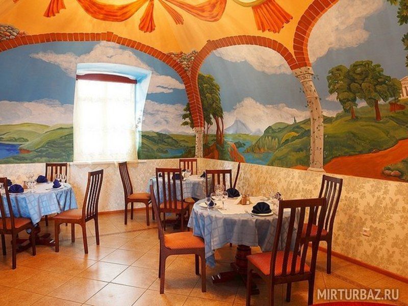 Просторный холл ресторана позволяет проводить анимационные мероприятия (конкурсы, танцы, дискотеки). Уютно устроившись в кресле можно наблюдать, как завораживающе горят и потрескивают поленья в настоящей русской печи.