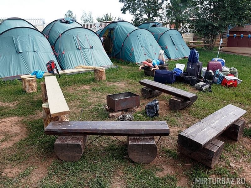Палаточный городок оборудован розетками 220 вольт, летними умывальниками, благоустроенными туалетами, а также есть горячий душ.