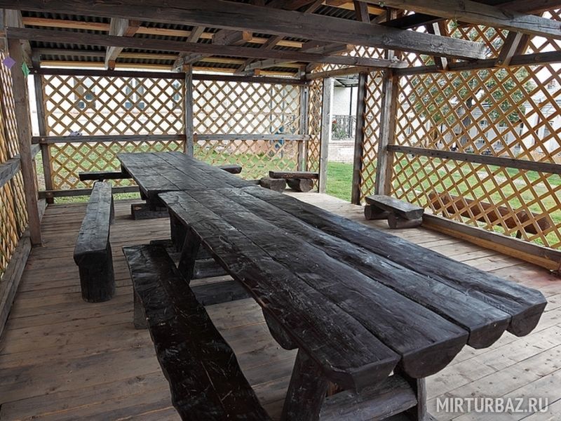 В большой беседке за большим столом с комфортом разместятся до 40 человек. Мангалы, шампура и решётки Вам предоставят.