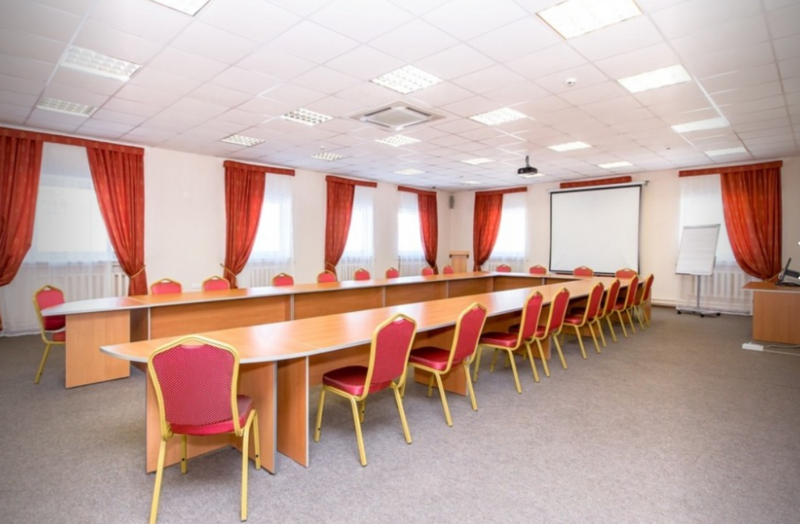 Стол овальный, неразборный. ТВ-плазма, ПК, интернет Wi-Fi, кондиционер. Высота потолка: 3 м. Естественное освещение. Вместимость: 24.