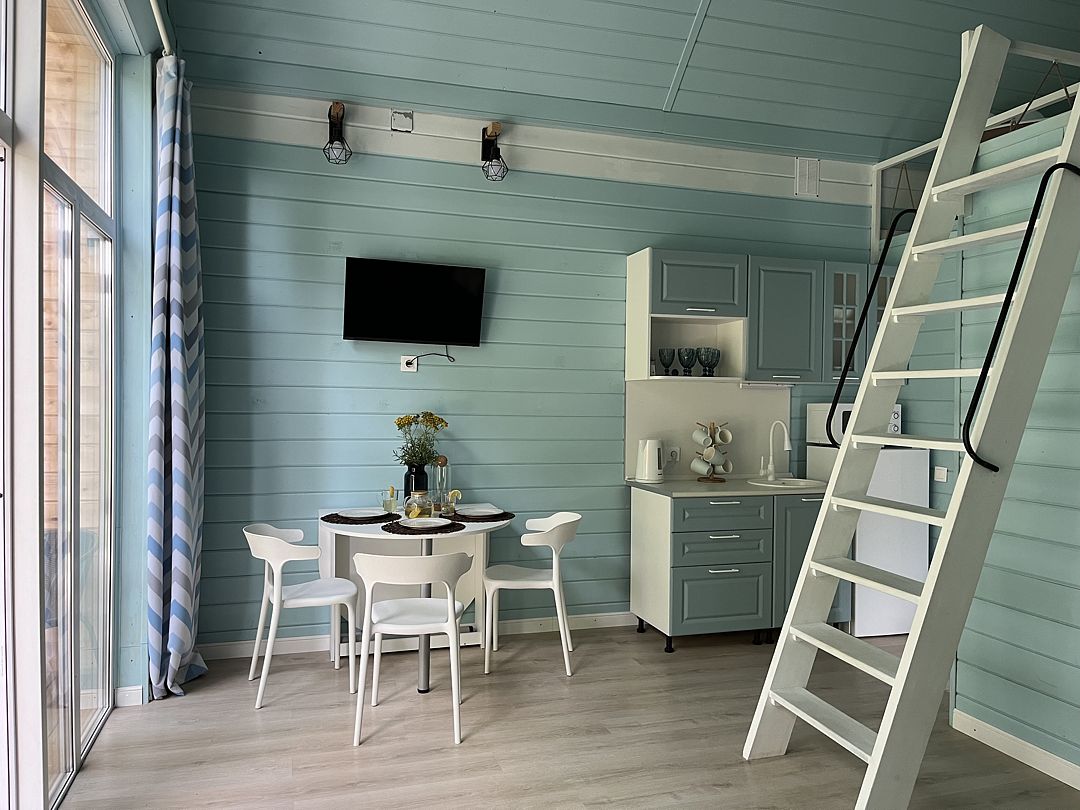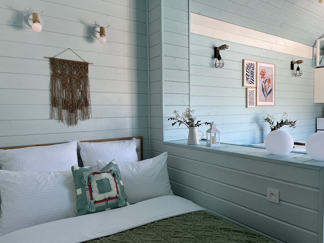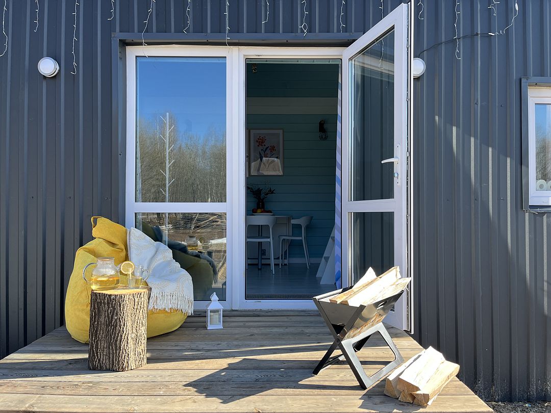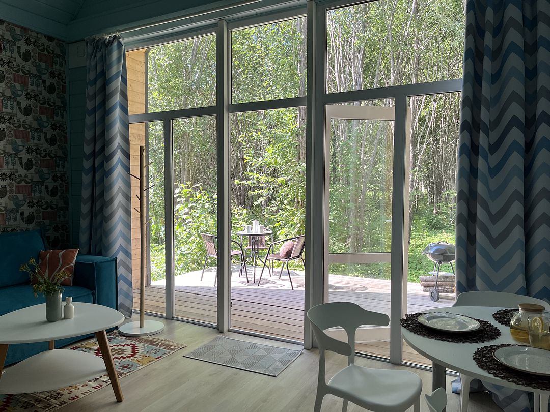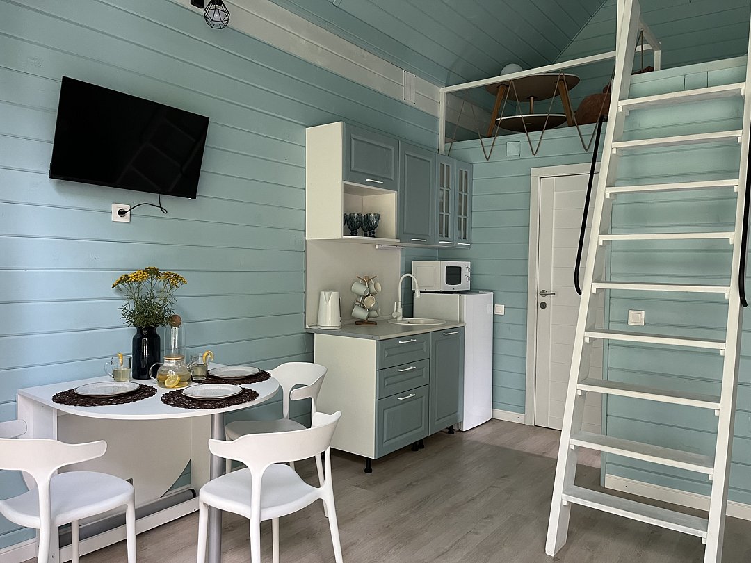 Стильные и уютные домики оснащены всеми необходимыми мелочами, которые позволят Вам отдохнуть и насладиться тишиной и размеренной загородной жизнью, не покидая пределы города. Возможна доставка продуктов из магазина «ВкусВилл».
