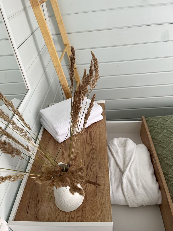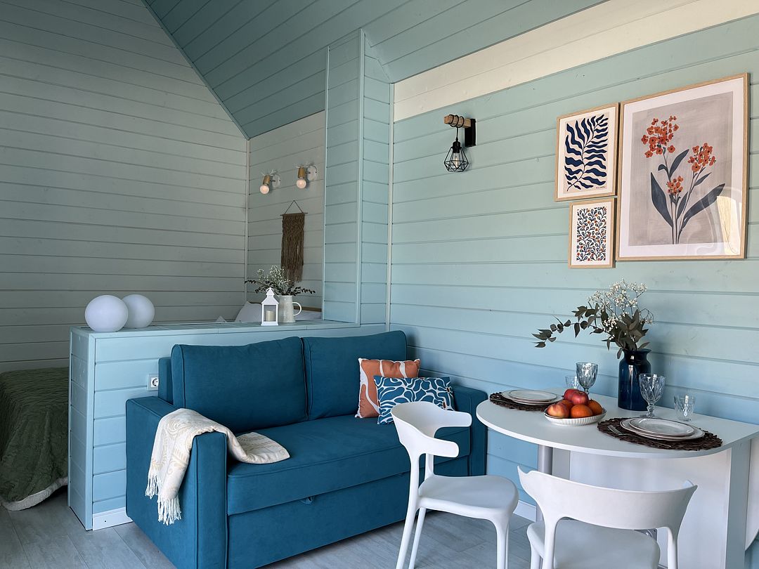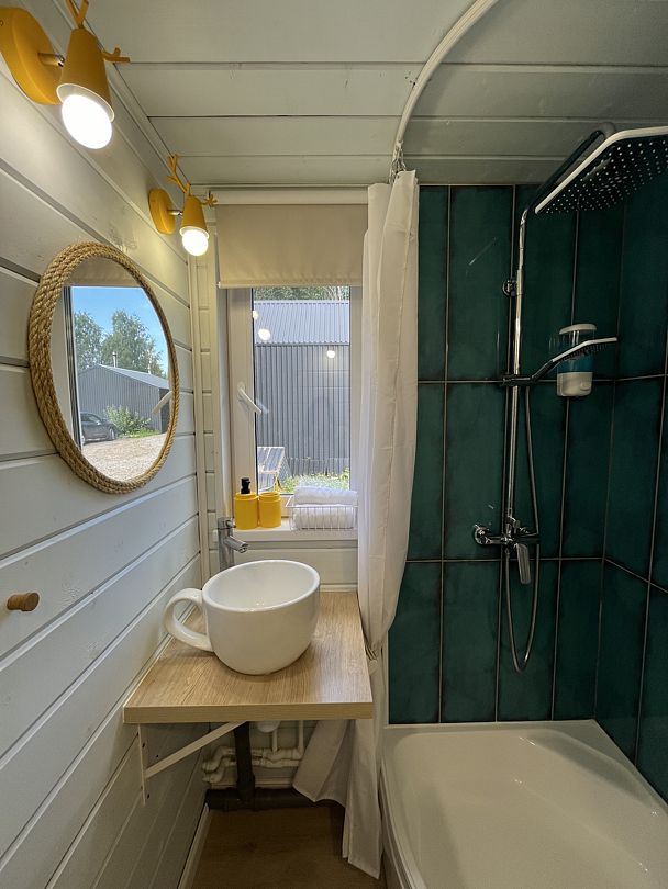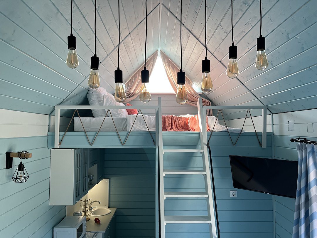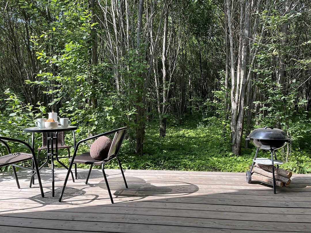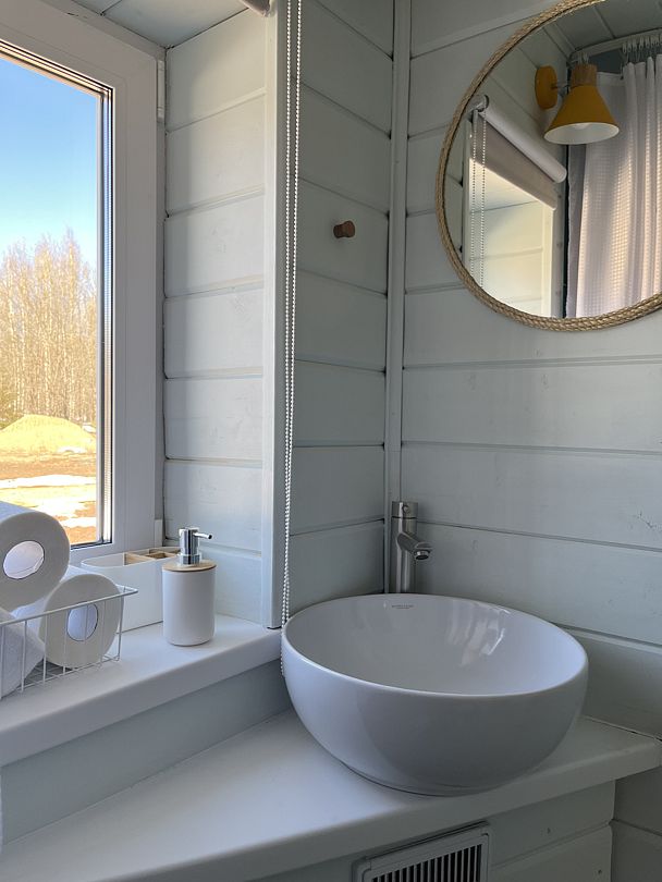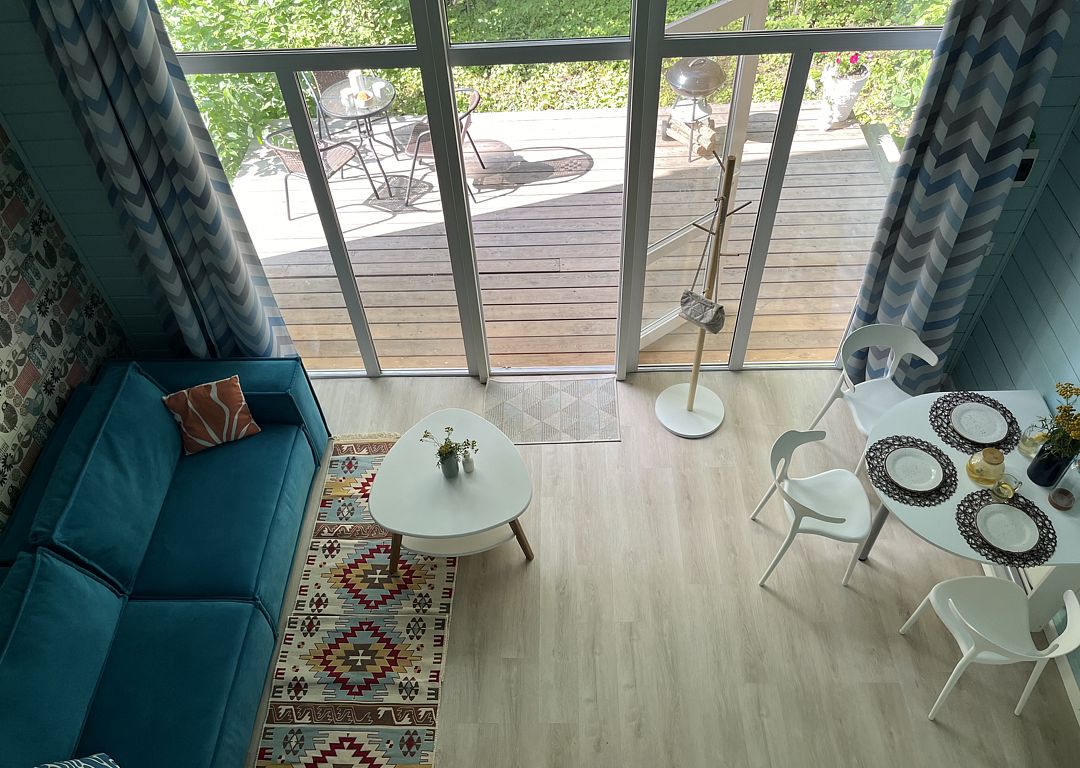 Стильные и уютные домики оснащены всеми необходимыми мелочами, которые позволят Вам отдохнуть и насладиться тишиной и размеренной загородной жизнью, не покидая пределы города. Возможна доставка продуктов из магазина «ВкусВилл».