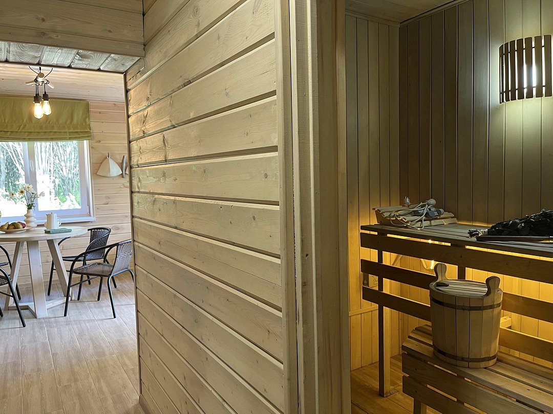 Семейный отдыхДостоинстваПрекрасно отдохнули вдали от города! Интерьер и комфорт домика - просто всё шикарно! Наличие бассейна - приятный бонус!