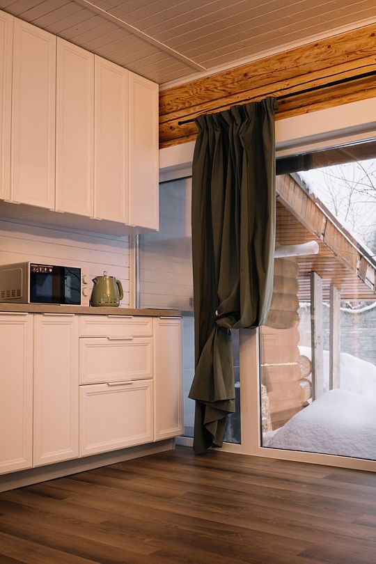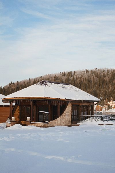 Здесь вы можете арендовать уникальные коттеджи с их неповторимыми интерьерами, из окон которых открывается вид на залив реки, окруженный сказочным вековым лесом. На территории турбазы есть русская баня и финская сауна, бассейн с гидромассажем и подогревом, а также зоны для игр и собственный пирс.