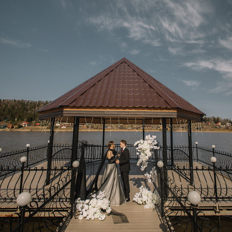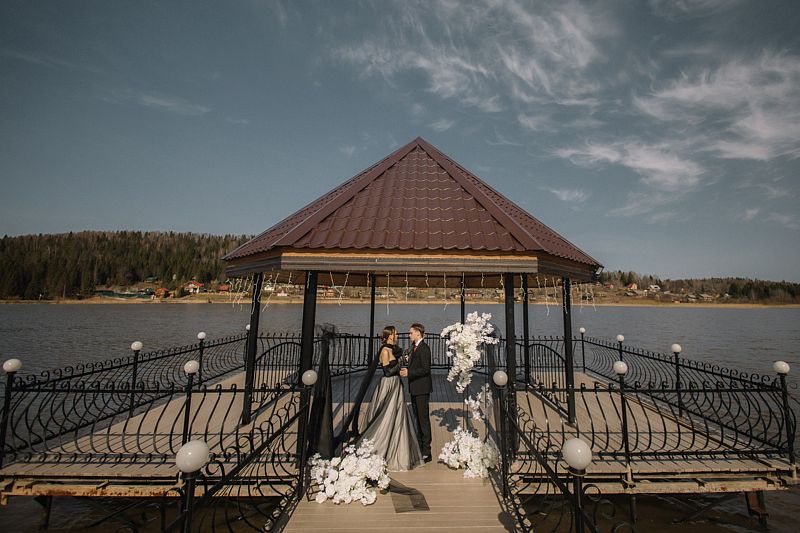 В «Pushkin» современный интерьер, панорамные окна, барное пространство, изысканная мебель, декоративная подсветка и искусственный водопад. Вокруг банкетного зала живописная территория и собственный пирс.