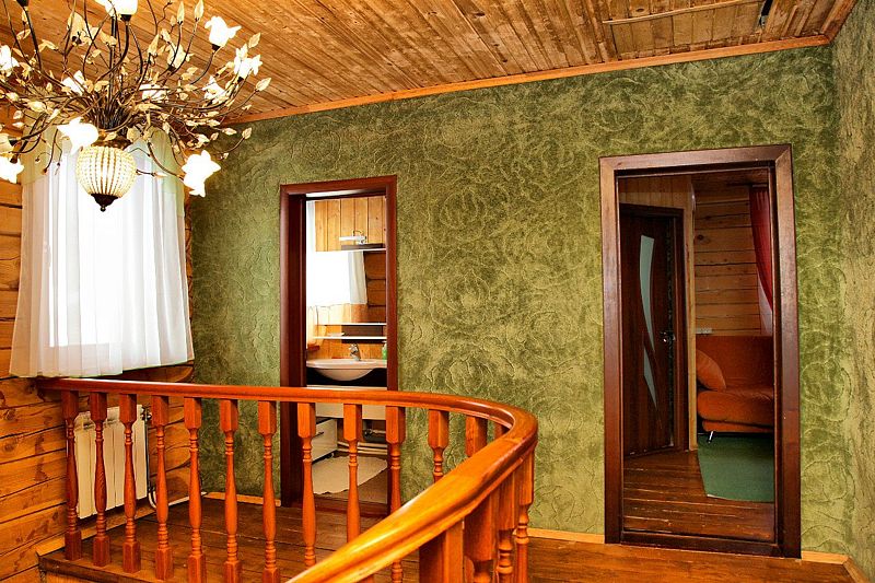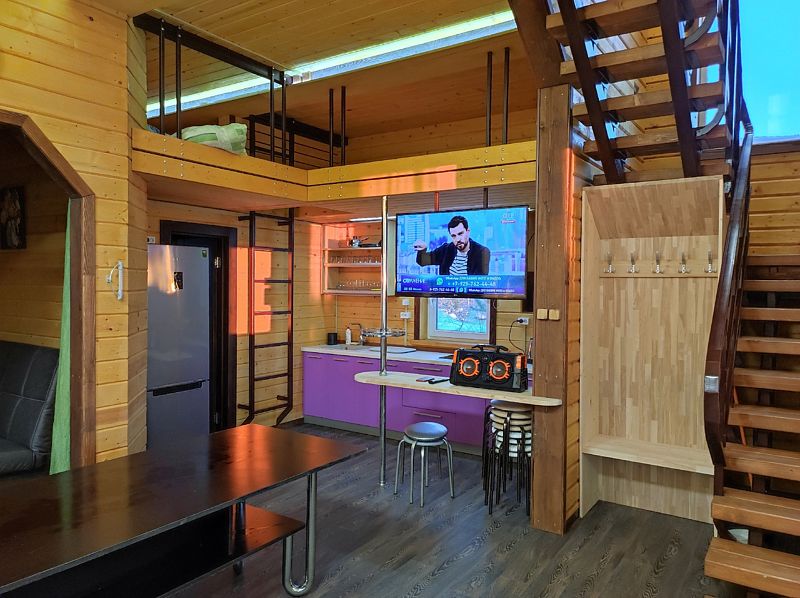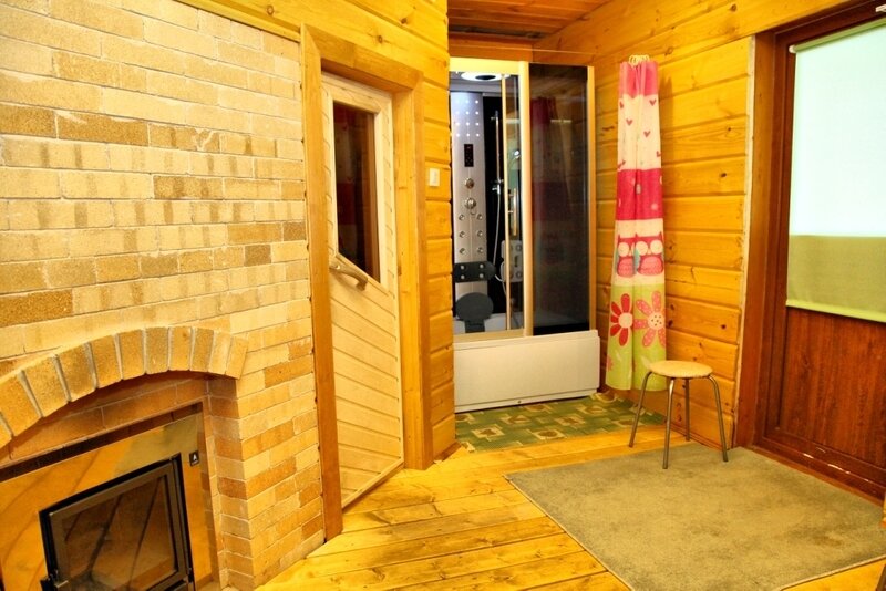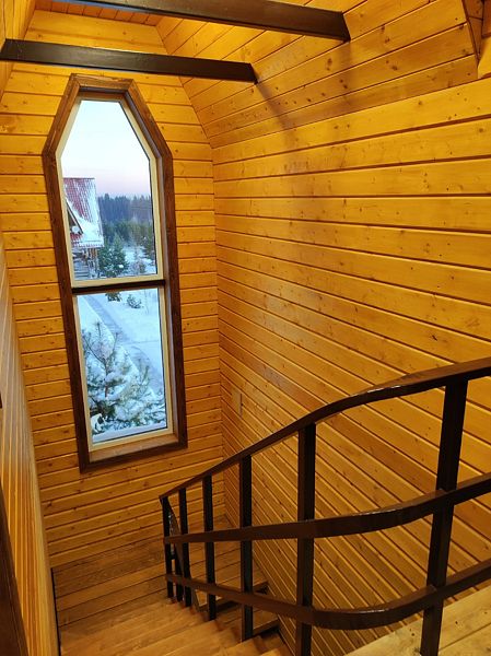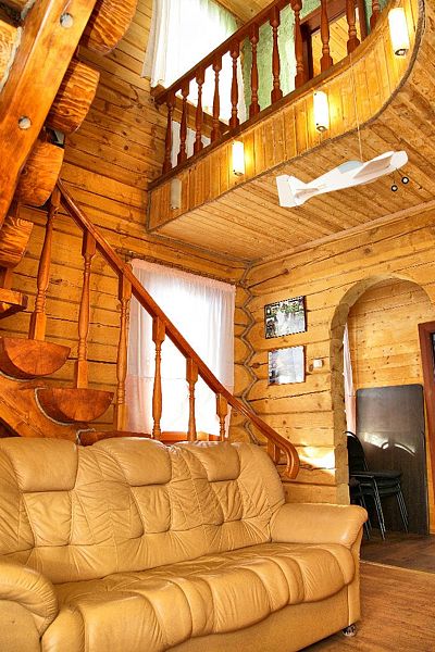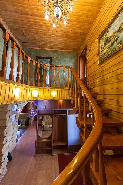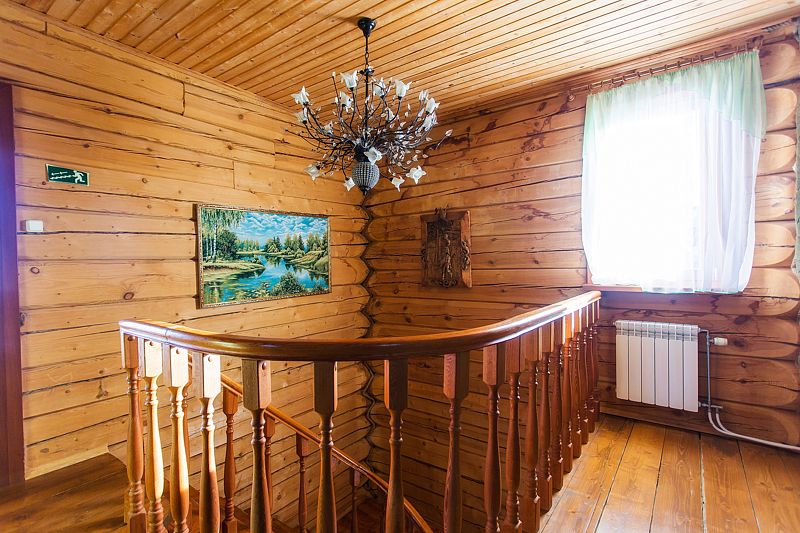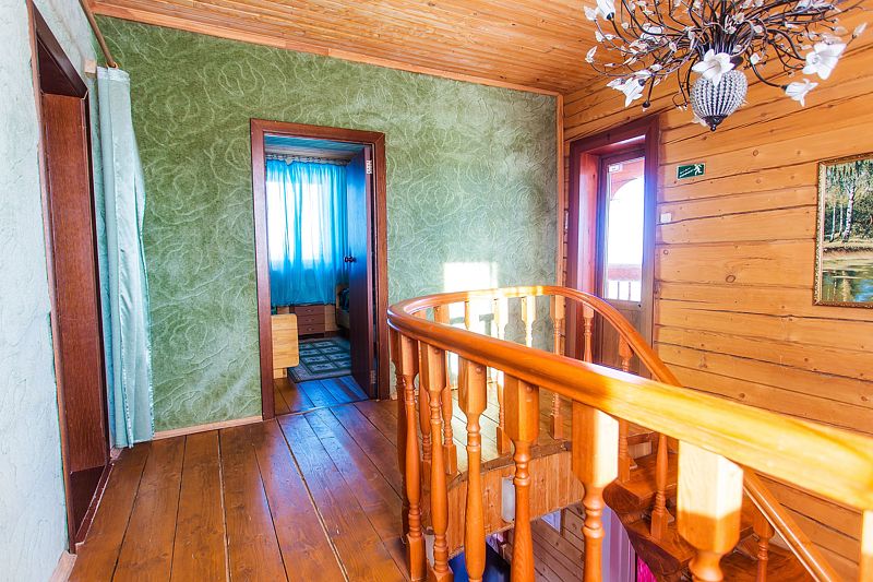 2 этаж – 3 спальных комнаты, санузел, телевизор, музыкальный центр, постельное белье и посуда на 16 человек.