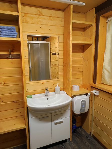 1 этаж – кухня, совмещенная с залом, санузел с душевой кабиной.