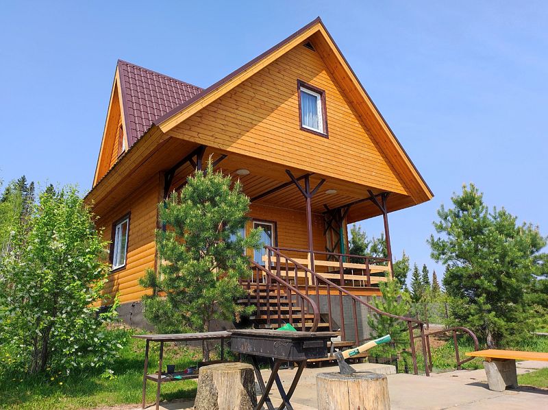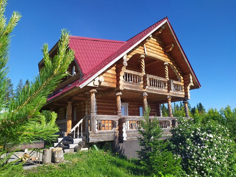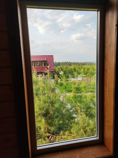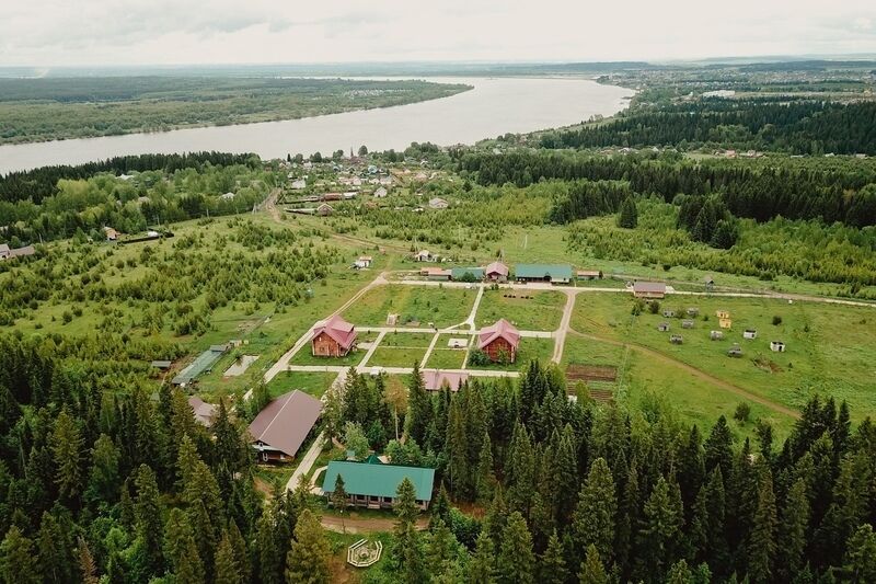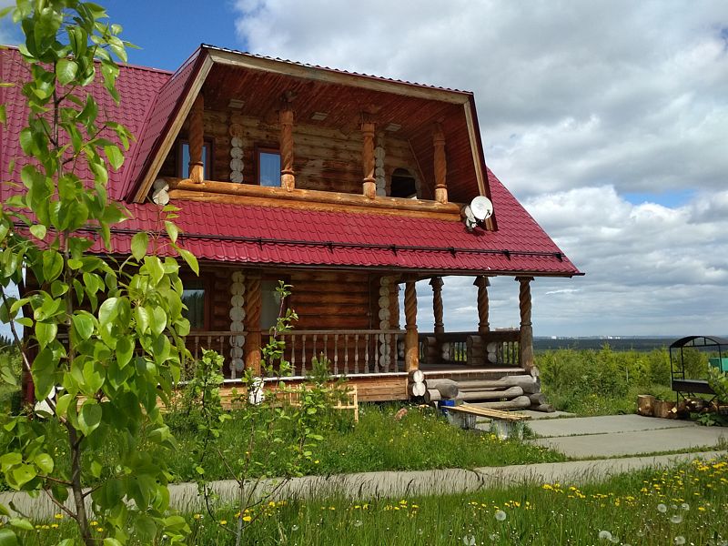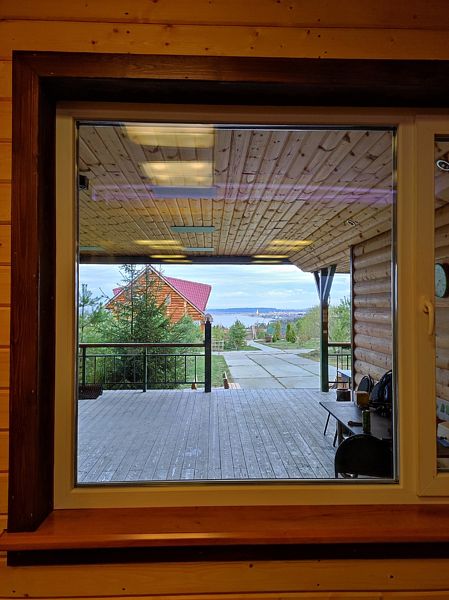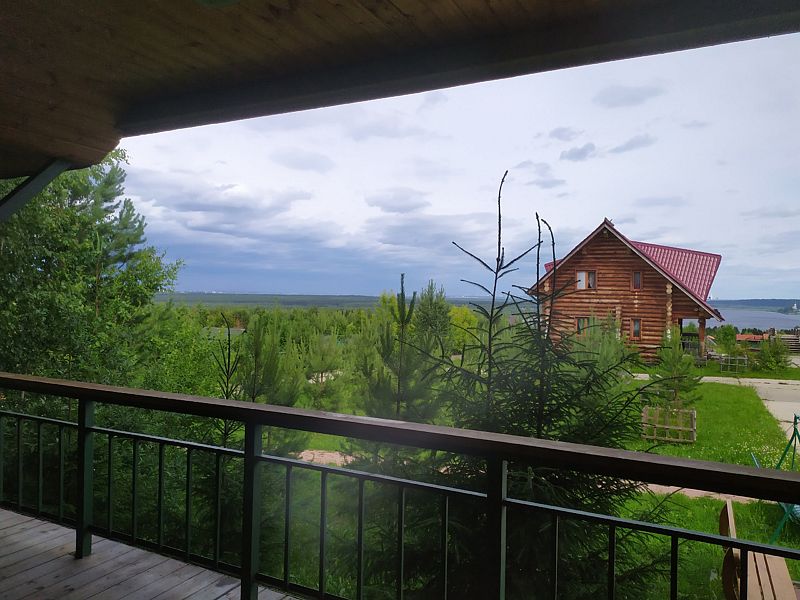 У дома самая большая веранда вместимостью до 30 посадочных мест, подходит для организации небольших мероприятий, с веранды открывается шикарный вид на долину реки Кама и город.