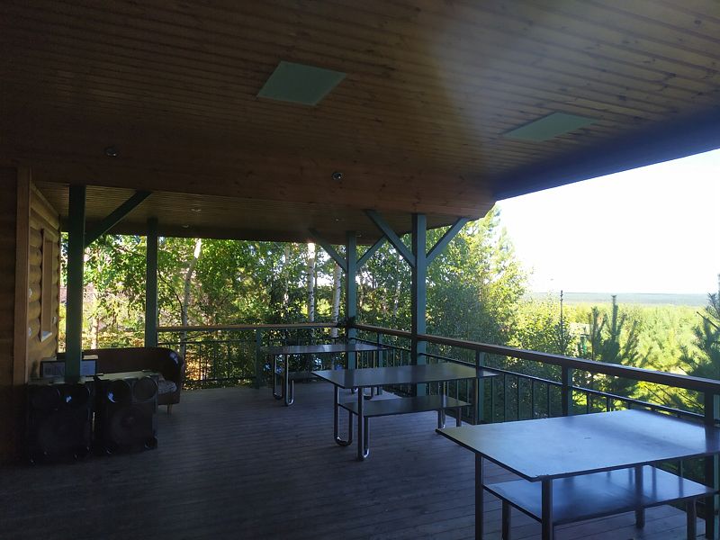 У дома самая большая веранда вместимостью до 30 посадочных мест, подходит для организации небольших мероприятий, с веранды открывается вид на долину реки Кама и город.