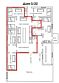 Включает 5 комнат, одна из которых гостиная, совмещенная с кухней, 3 санузла, один оборудован душевой кабиной.