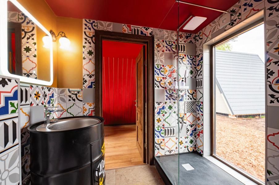 На территории оборудована парковка, тропический душ, кинотеатр под открытым небом, большой бассейн, баня, купель фурако, беседка, фотозона, гигантские шахматы, зоны отдыха и многое другое.
