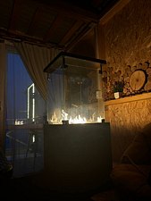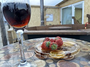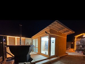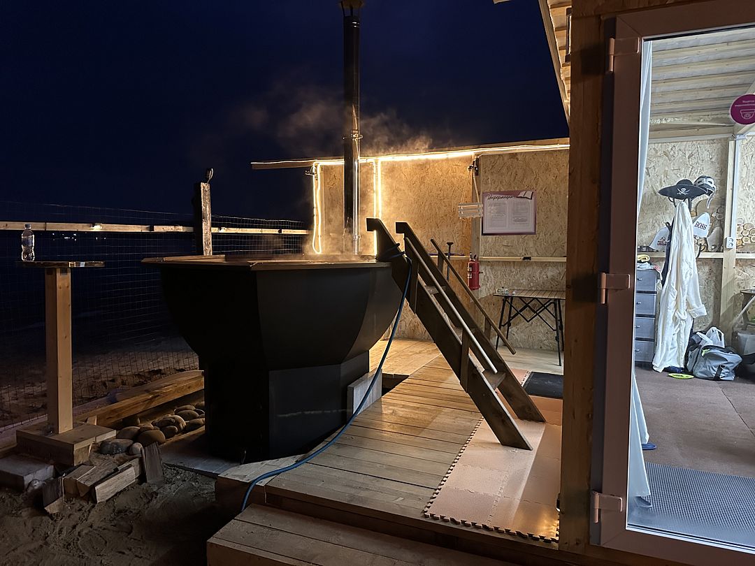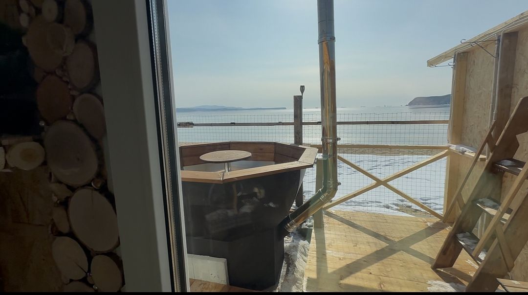 Можно отдельно заказать банный чан с различными запарками. Разовое парение длится примерно 3.5-4 часа. Рядом с чаном стоит крытая беседка с камином, колонкой блютуз, и сам чан в 25 метрах от моря.