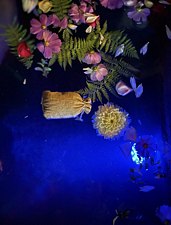 Банный чан с сушеной Мелиссой, а так же летом добавляется от 3 до 5 видов свежей мяты с собственной грядки!! Эту композицию разбавляют листы папоротника и небольшие цветочки так же с собственной клумбы!