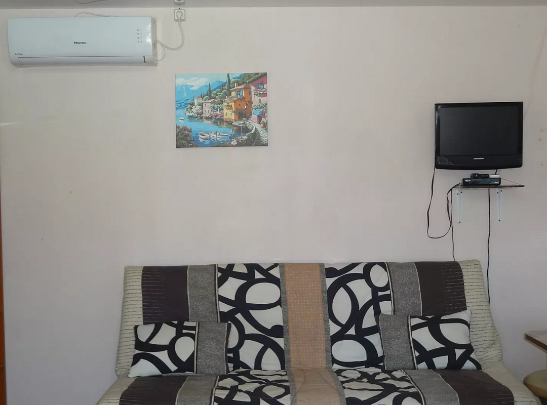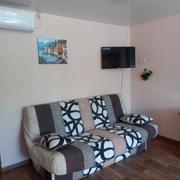 22 кв.м. две 1спальн. кровати, диван, кондиционер, санузел, душевая кабина, холодильник, цифровое ТВ, ЖК телевизор, журнальные столики, прикроватные тумбочки, комоды или стеллажи, отдельный вход, терраса