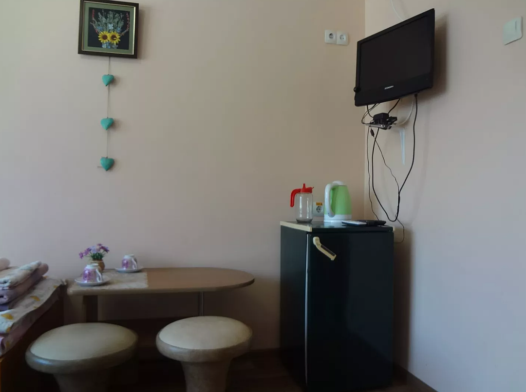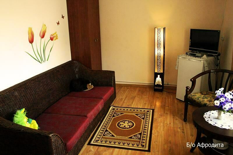 НедостаткиЦены как в гостинице, а толком ничего нет. Номер заказывали в феврале двухкомнатный сказали, а оказалось 10 квадратов. Доплатили ещё дали больше, ладно смирились. Появилась змея в ванной, запенили дырку, но это туда, сюда в номере, у нас ребёнок 1 год, ладно смирились, через три дня опять вылезла, как можно с ней жить в номере, хозяйка дала другой номер где сутки боллер не работал, при этом обещанного кухни нет, за газовую печку плати, за баллон плати. Басейн не поставила, сказала кушать от Афродиты идите на лево в санаторий, а купаться в бассейне на право. Я за это заплатила кучу денег ей. Ребёнок сидит в детском бассейне, насыпал песка она его от туда вытурила и пошла мыть, но это мой ребенок, я заплатила за комфорт, там его нет, она везде всё убирает чтоб другим досталось. За всё плати, не соответствует цена и качество.