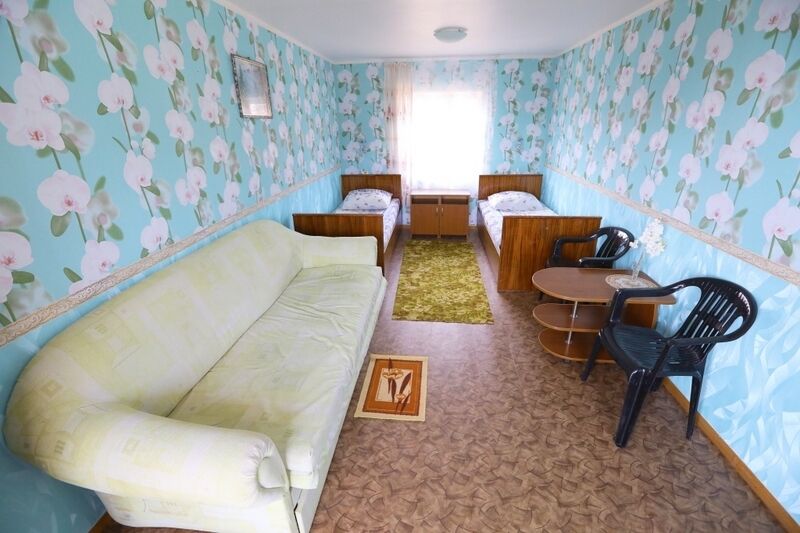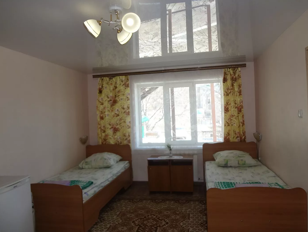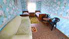 4 односпальные кровати или 2 односпальные кровати+диван, телевизоры, прикроватные тумбочки, кресла, журнальные столики, стеллажи для одежды. Удобства: санузел и душевые кабины находятся на этаже, в отдельном оборудованном помещении, раздельно мужские