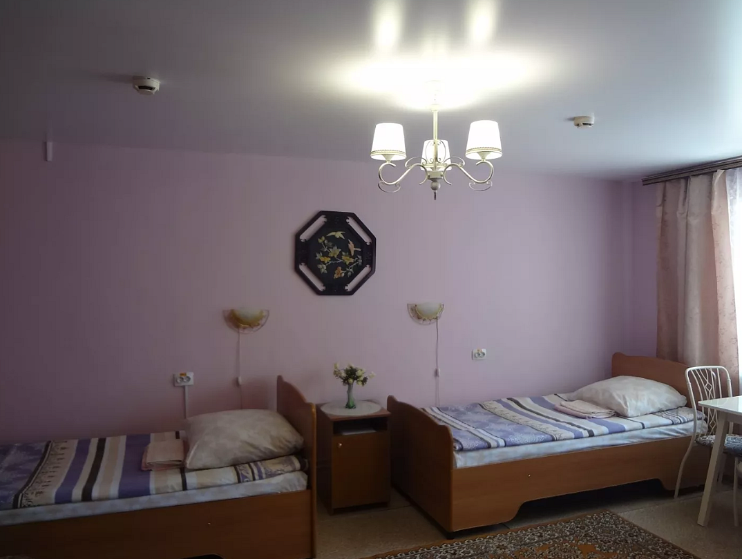 Двуспальная или две односпальные кровати, телевизоры, прикроватные тумбочки, кресла, журнальные столики, стеллажи для одежды. Удобства: санузел и душевые кабины находятся на этаже, в отдельном оборудованном помещении, раздельно мужские и женские.