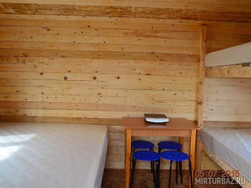 Деревянные утепленные домики. Оснащенные одной двухярусной и одной двухспальной кроватями, стол, 4 табуретки, выдается постельное белье. Электричество, электроплита, холодильник. До моря 20 метров, первая линия.