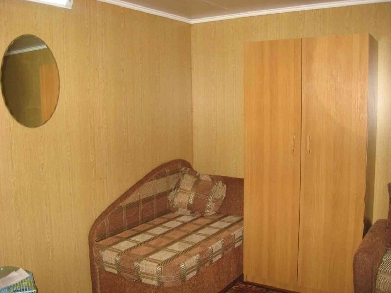 В комнате имеется: 2-х местный диван-кровать и две одно спальные тахты, на полу ковры, стулья, холодильник, телевизор, стол, плательный шкаф, зеркало, на стене картина, электрочайник, графин, стаканы, обогреватель. телевизор. холодильник. В туалетной комнате дополнительно ,тазик для мытья ног.