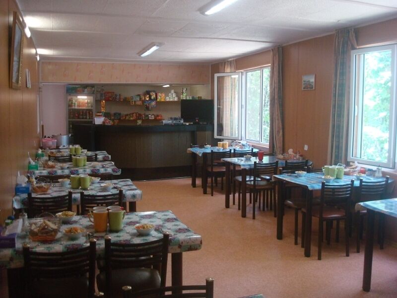 На территории есть не дорогая столовая в которой организовано трехразовое питание, детская и спортивные площадки.