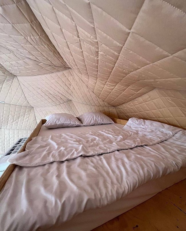 В глэмпинге может разместиться трое взрослых, либо 2 взрослых/2 детей.