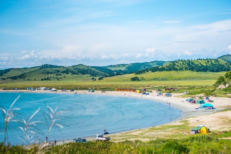 Бухта «Алеут» - это чистая, прозрачная вода и широкий песчаный берег.