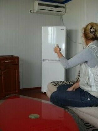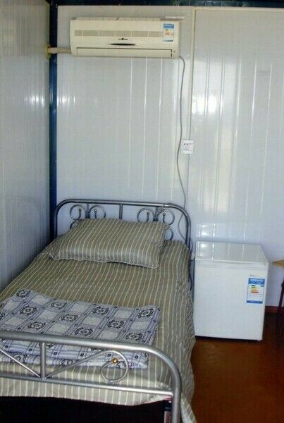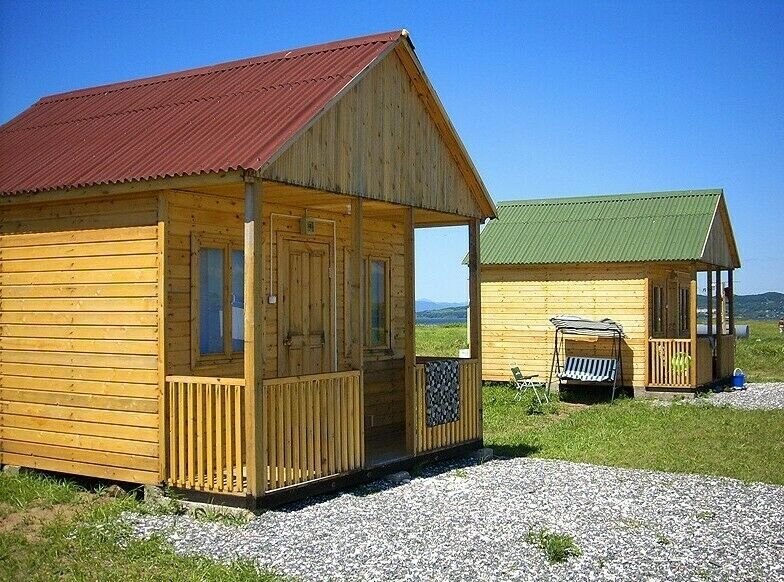 Домик рассчитан для 3х человек, оборудован тремя односпальными кроватями, столом, стульями, холодильником, кондиционерами