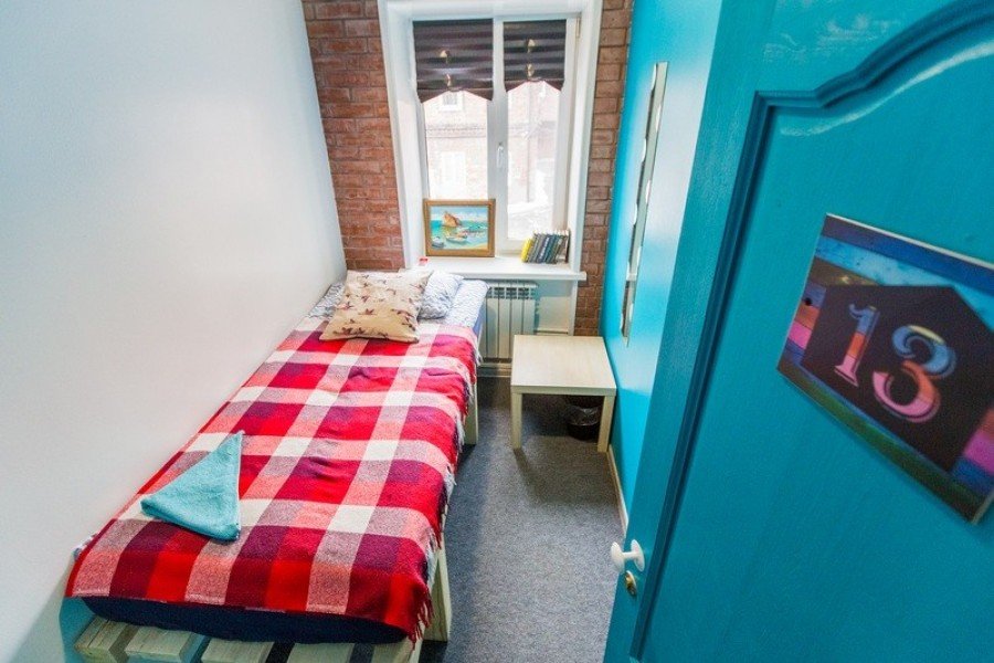 Интерьер был придуман молодыми дизайнерами Владивостока. Душа и туалета в комнате нет, они общие на этаже. Бесплатный Wi-Fi.