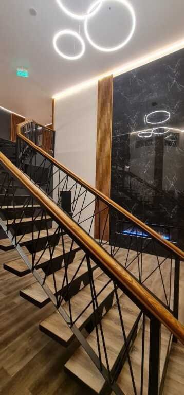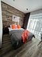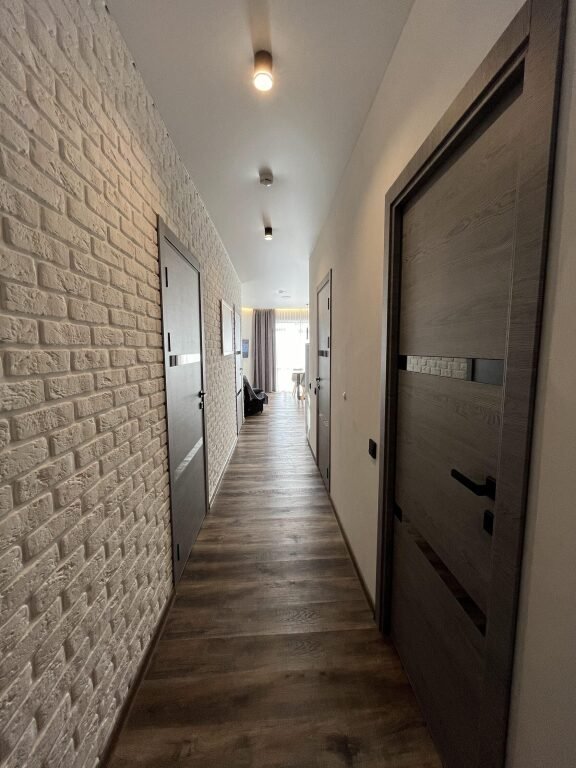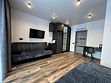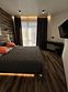 В каждой спальне: двуспальная кровать, стол, 2 стула, телевизор, прикроватные тумбы. Имеются гардеробная комната, просторный зал с кухней-столовой: обустроенная кухонная зона с электрической печью, духовым шкафом, холодильником, вытяжкой, микроволновой печью, посудомоечной машиной, стиральной машиной, чайником, посудой на 6 персон, есть телевизор, кондиционер и полутораспальный диван, подогреваемые полы.