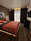 В каждой спальне: двуспальная кровать, стол, 2 стула, телевизор, прикроватные тумбы, а также гардеробная комната, зал с кухней-столовой. Кухонная зона оборудована электрической печью, духовым шкафом, холодильником, вытяжкой, микроволновой печью, посудомоечной машиной, стиральной машиной, чайником, посудой на 6 персон. В номере есть телевизор, кондиционер и полутораспальный диван, подогреваемые полы.