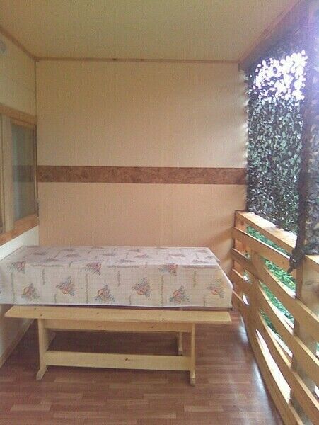 4-х местные домики: в каждом доме имеются 4 односпальные кровати, тумбочки, стол, стулья, кухонная зона (кухонный шкаф, посуда, чайник, холодильник, газовая печка); также у каждого дома есть просторная веранда. Всего на базе отдыха три домика:два дома площадью 10 кв.м и один дом площадью 20 кв.м.