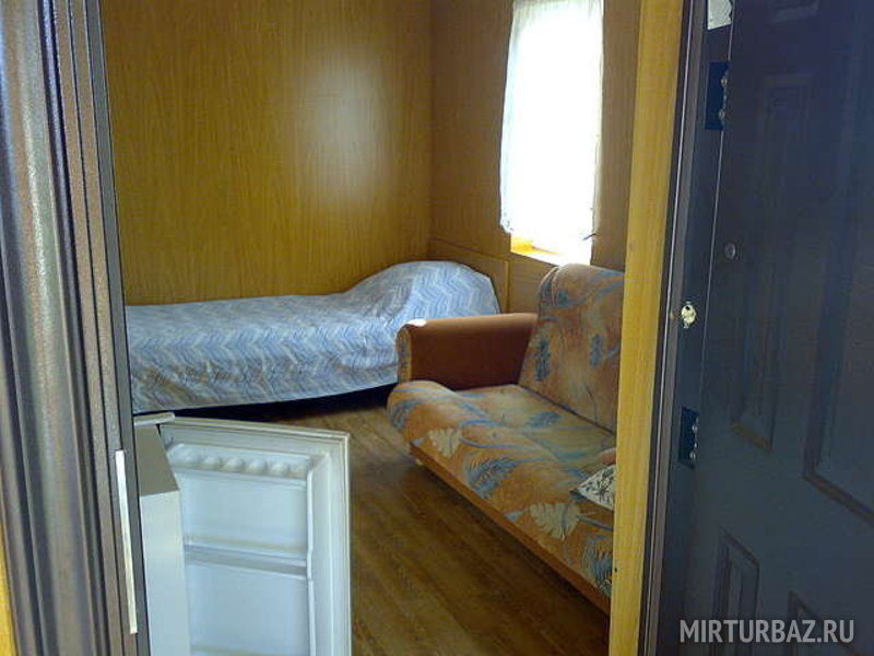 Отдельно стоящий домик. В домике - кровать двуспальная, кровать односпальная, диван.
