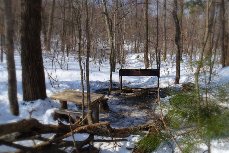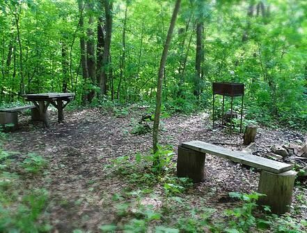 Возле домика туалет, площадка для пикника (стол, лавочки, мангал).