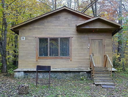 Возле каждого домика туалет, площадка для пикника (стол, лавочки, мангал).