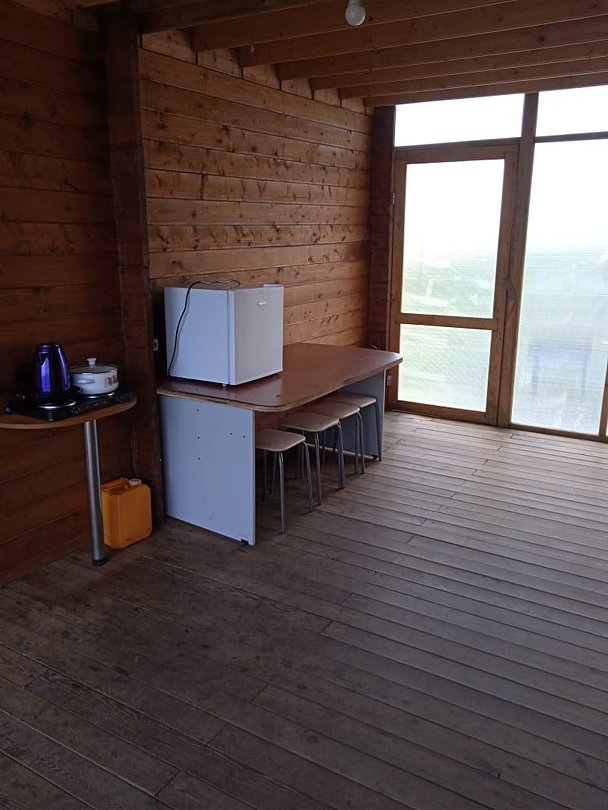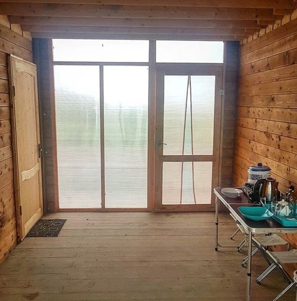 Рядом с гостевым комплексом построена большая крытая беседка с прозрачными стенами — все красоты этих мест видны, а от влаги, ветра и насекомых отдыхающие надежно укрыты.