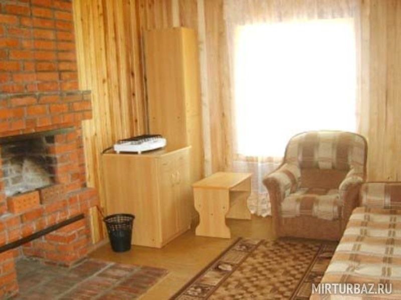Однокомнатный домик. В домике: двуспальная кровать, набор мягкой мебели (двуспальный раскладной диван, два кресла), столик, телевизор, чайник, санузел (туалет, раковина, холодная вода).