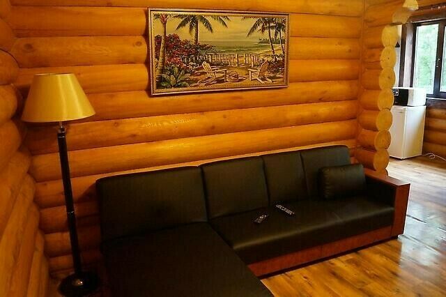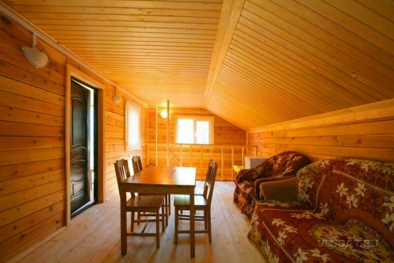 2-ух комнатный: 1 двухспальная кровать, 1 односпальная, кухонная зона Стол, табуретки. Холодильник, чайник. Плита- при наличии, в администрации выдается под залог. Веранда, стол, скамьи, мангал. Удобства на территории: душевые - хол. и гор.вода, умывальники, туалет – кафель, вода.