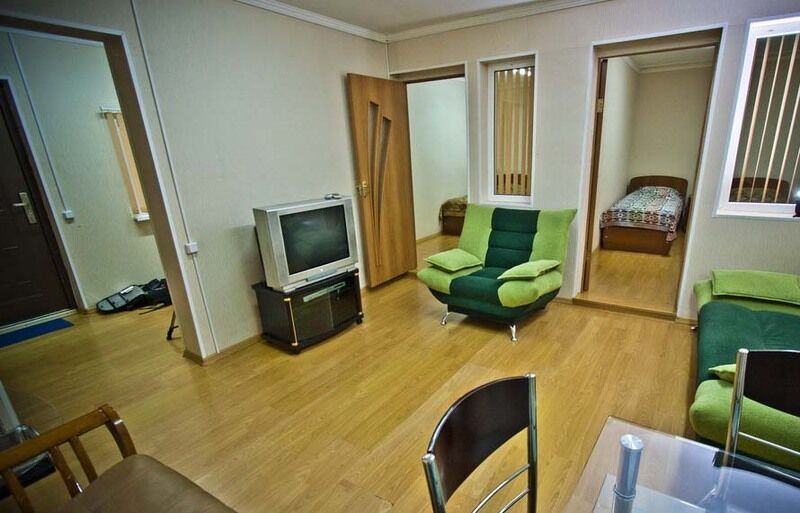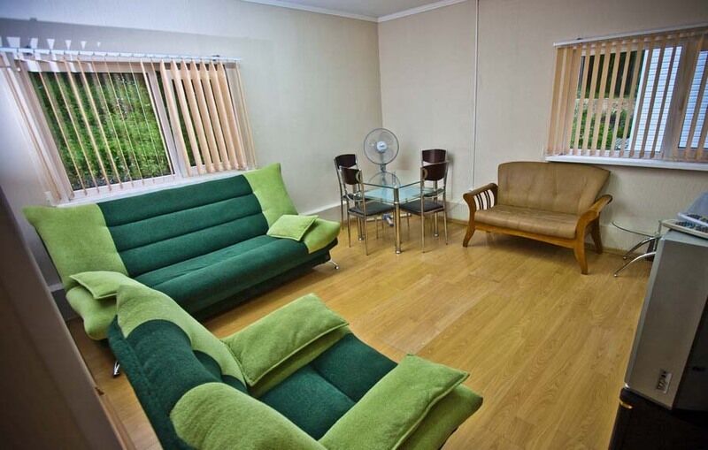 В номере: телевидение (10 каналов), 4 односпальные кровати, диван трансформер, обеденная зона, кухня, санузел и душ, микроволновая печь, холодильник