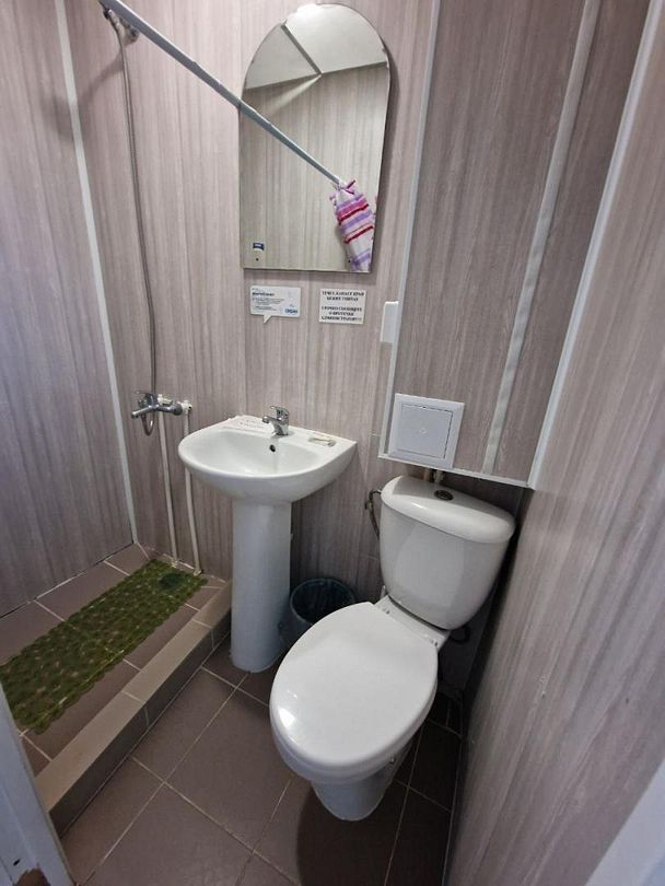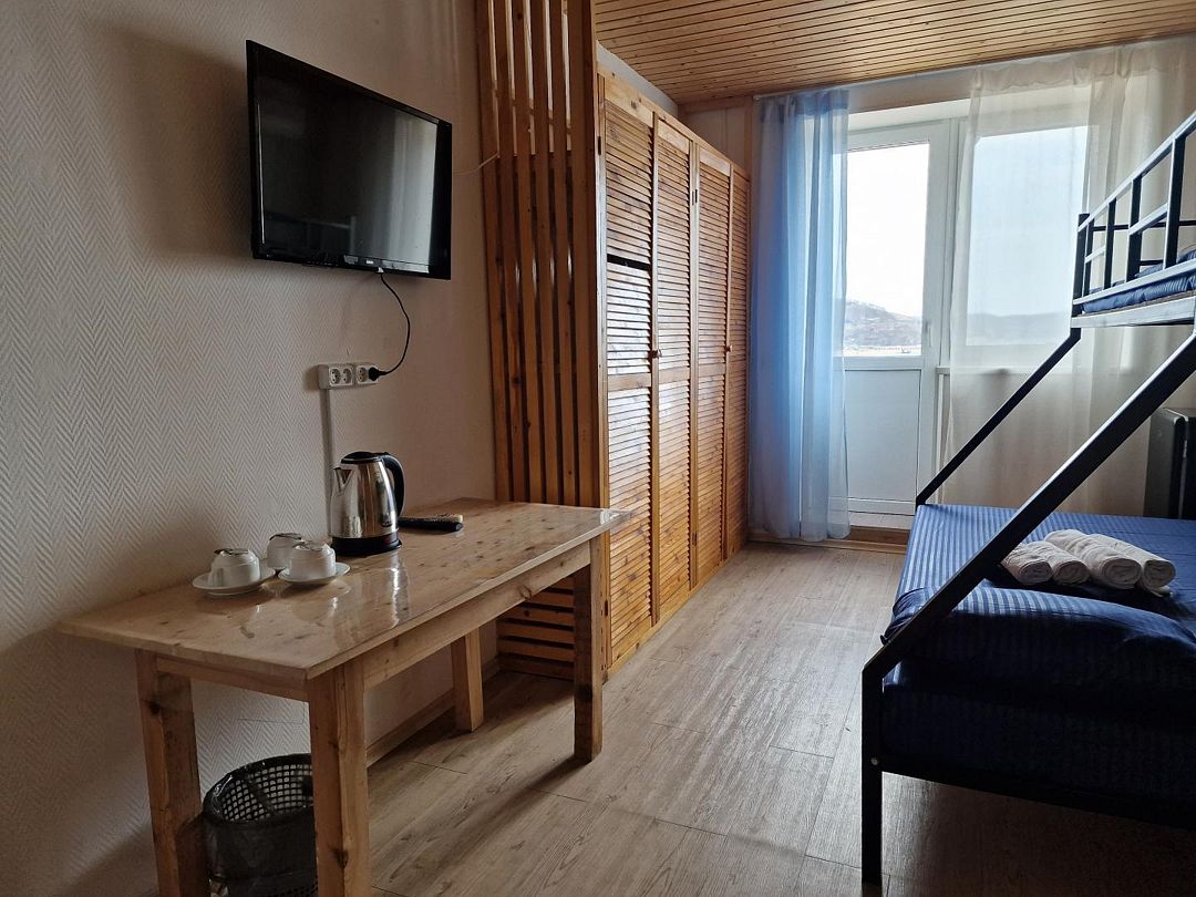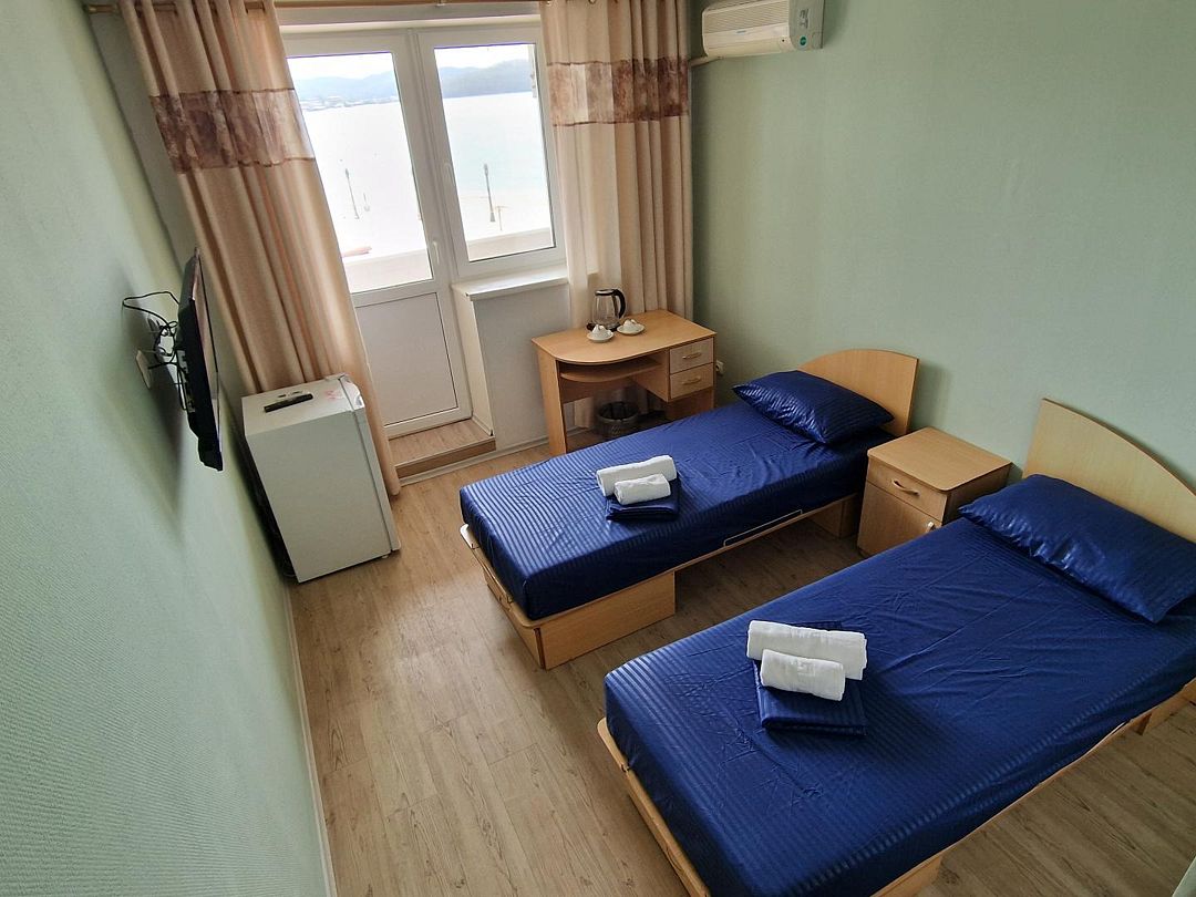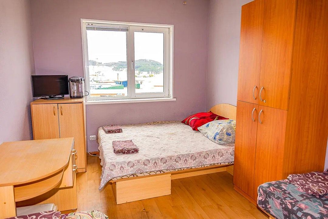 двуспальная кровать, двухъярусная кровать, телевизор, холодильник, шкаф, туалет и душ находятся на этаже номера.
