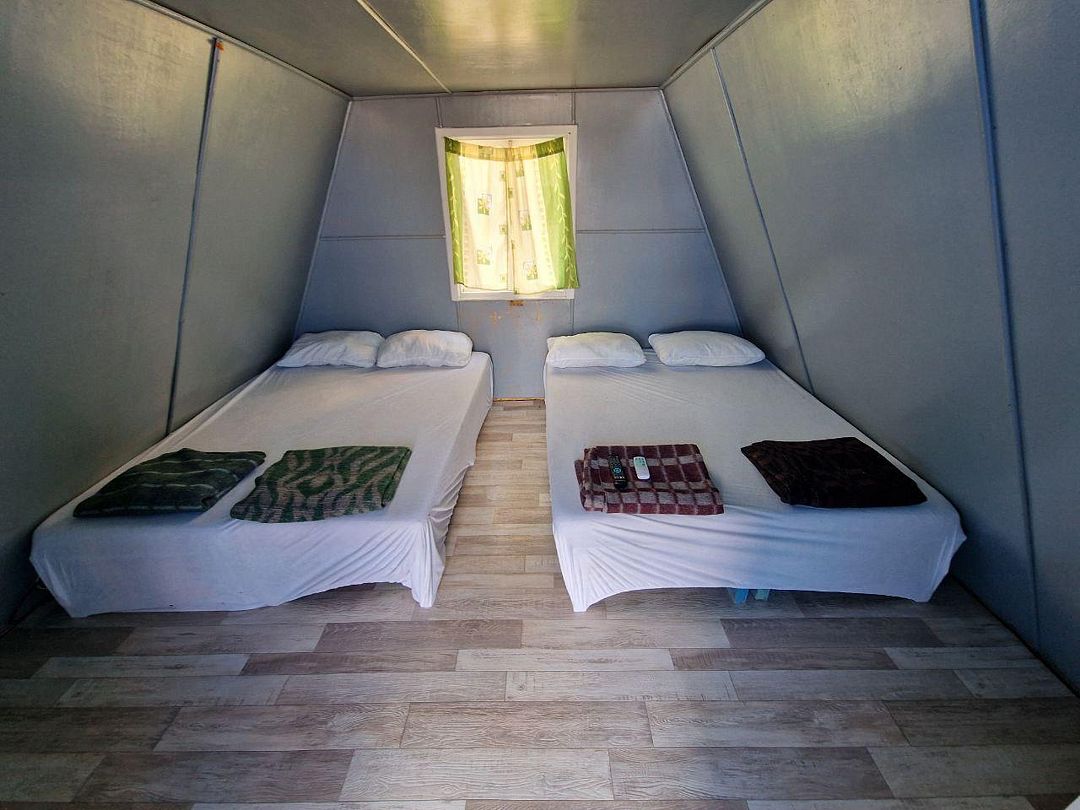 двухъярусная кровать с 2спальн.кроватями на каждом ярусе, К, ТВ, Х, набор мебели, свой мини дворик, раковина на веранде, с/у с душем внутри.