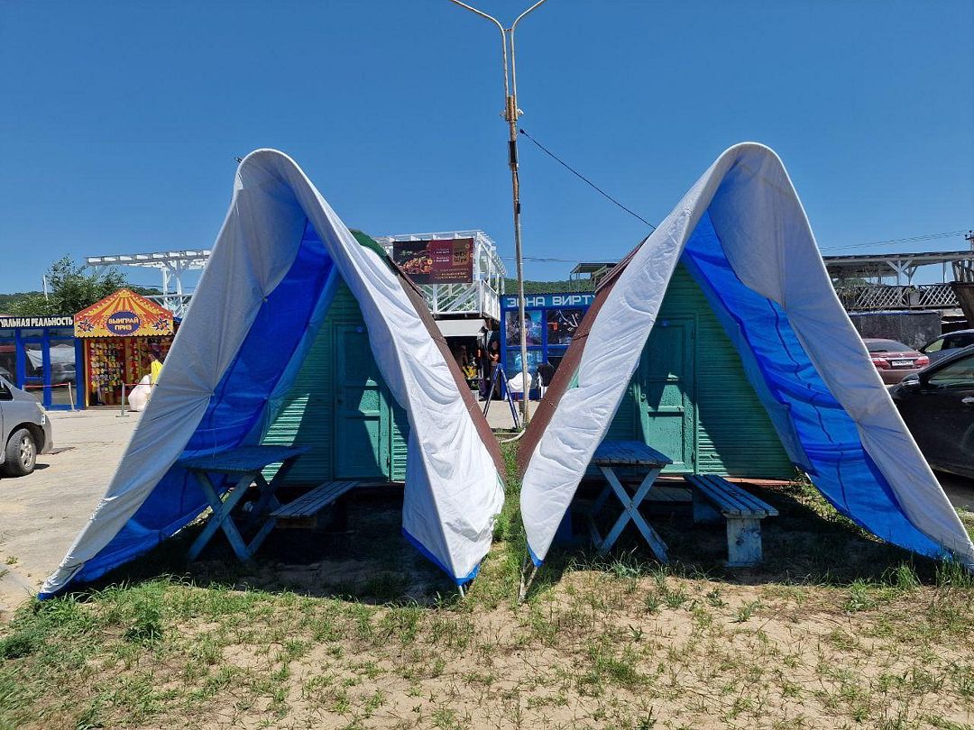 Услуга "Объединение тентов" – это сервис, предоставляемый управляющей компанией, включающий временное объединение двух тентовых домиков в один общий для создания более просторного помещения. Услуга включает в себя оперативное соединение домиков до заезда гостей и последующее разъединение тентов после их выезда, стоимость 5000р.
