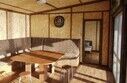 Кровати двуспальные и двухъярусные, обеденный стол со стульями и диваном, кухня.