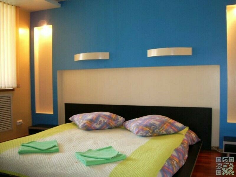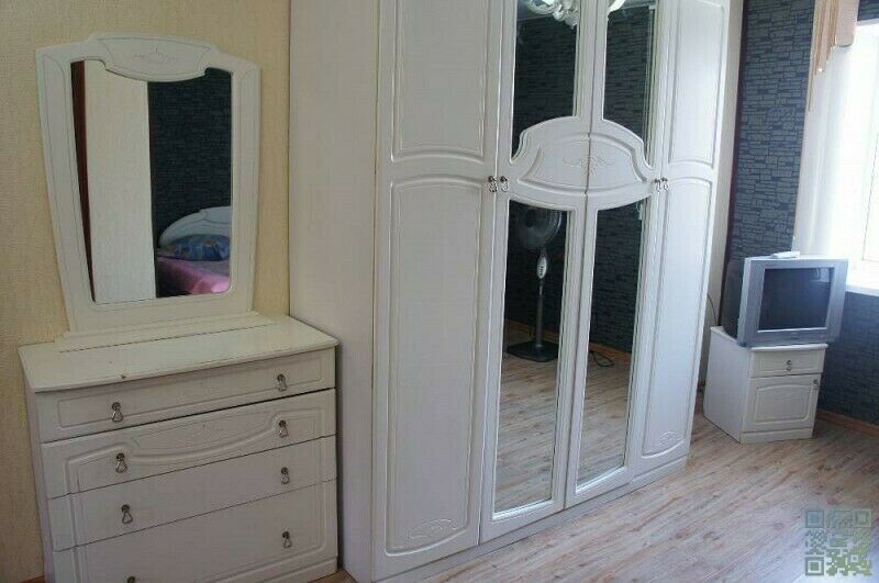 Комплектация номера: Кровать двуспальная, диван раскладной (на 2 человека), тумбочки, шкаф для одежды, телевизор, холодильник, чайник, утюг.