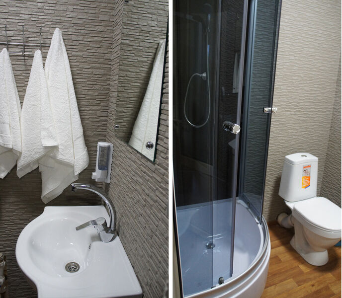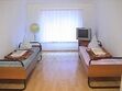 Комплектация номера: 2 кровати, тумбочки, вешалки для одежды, телевизор.