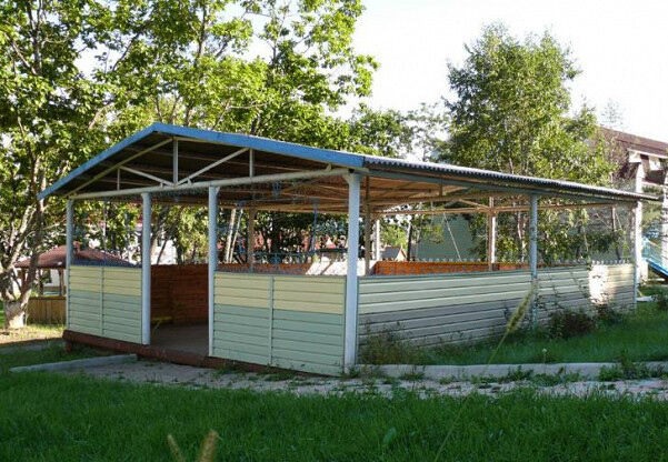 Футбольное поле, баскетбольные кольца по территории, волейбольные площадки