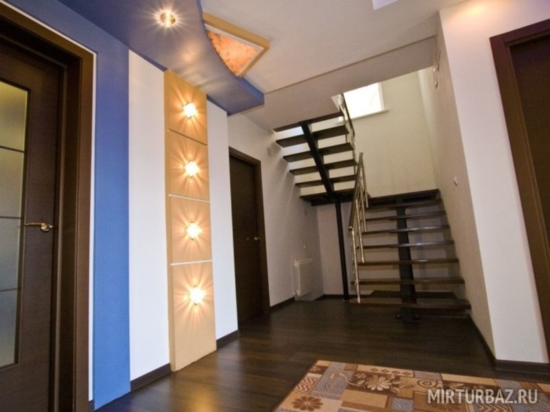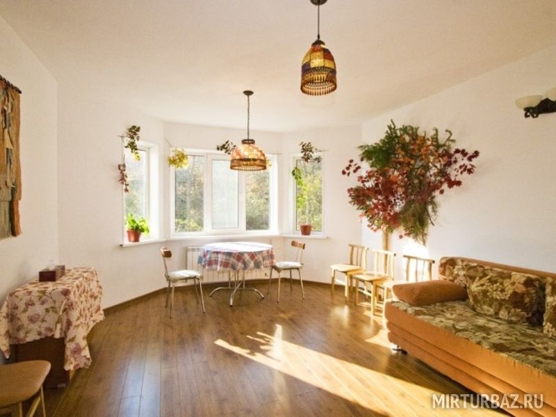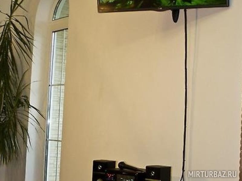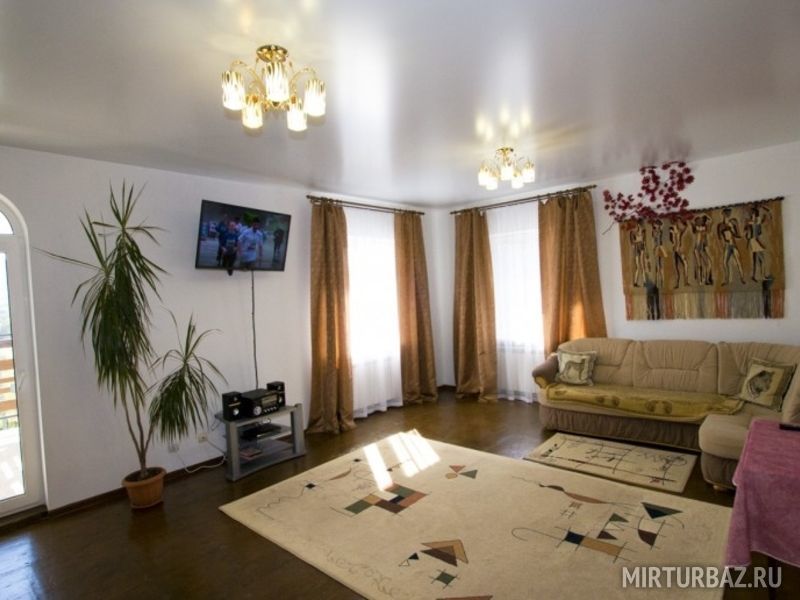 Второй этаж: просторный зал (набор мягкой мебели, двуспальный раскладной диван, телевизор плазма, караоке, DVD), две спальные комнаты (в каждой комнате двуспальная кровать, тумбочка, журнальный столик), ванная комната (туалет, ванна, душ, раковина, имеется холодная и горячая вода), два балкона.