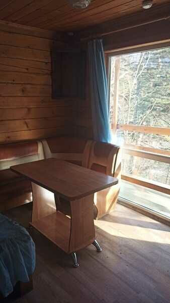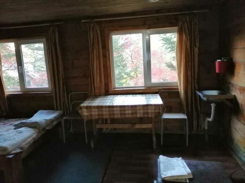 Для проживания отдыхающих предусмотрены деревянные домики на разное количество человек (от 2-х до 9-ти). Домики с печным отоплением (отапливают сами жильцы), умывальники в доме, туалеты на улице.