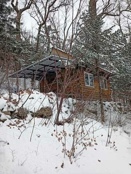 В домике для размещения предлагается одна двуспальная кровать и диван. Умывальник в доме, туалет на улице.